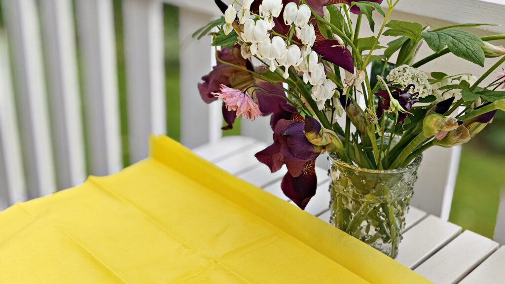 Blogi Mama’s garden Blogi Yleinen Kesäjuhlat — koristeita silkkipaperista Mikään ei tietenkään voita aitoja kukkasia kesäjuhlien koristeina mutta kuten viimekin vuonna niin halusin tänäkin vuonna toteuttaa myös jonkin paperiaskartelun työporukkamme kesäjuhlille. Viime vuonna se oli vihreästä kartongista ja paperinarusta tehty viirinauha, missä oli melkein 200 lippua. Nauha oli 20 lipun osissa ja juhlapaikan koristelijat olivat saaneet ne ripustettua todella hienosti esille. Nyt juhlapaikkana on korkeampi huonetila joten ripustettavien pitää olla helposti kiinnitettäviä ja mielellään jotain vähän massiivisempaa. Pinterestiä selaillessani törmäsin sitten näihin muhkeisiin pom-pomeihin ja ihastuin. Pallojen tekeminen ei kuitenkaan ollut niin yksinkertaista kuin miltä se aluksi vaikutti. Vasta kolmas pallo onnistui ja siitä tuli sellainen kuin halusin, eli tarpeeksi muhkea. Ensimmäiset kokeilut tein kreppipaperista ja tämän kolmannen sitten silkkipaperista. Onneksi säilytin kuitin niin voin huomenna käydä vaihtamassa loput krepit silkkiin. Väreinä palloissa on tämä keltainen, musta ja vihreä. Näiden kukkapallojen seuraan täytetään vihreitä firman heliumpalloja viime vuoden tapaan. Ruokapöydille hankitaan kertakäyttöistä kaitaliinaa, ehkä sekin voisi olla vihreää. Ja tietysti sitten lähempänä kerätään puutarhasta niitä aitojakin kukkasia, mitä nyt sitten siihen aikaan onkaan kukassa. Viime vuonna vein daalioita ja porkkanankukkia vihreissä viinipulloissa. Silkkipaperipallon ohjeet Kirjaan nyt tähän tämän silkkipaperipallon ohjeet, mikäli sinäkin haluat joskus käyttää vastaavaa ideaa juhlissasi. Väriä vaihtelemalla nämä käyvät häihin ja lastenkutsuille, mikseipä ihan puutarhajuhliinkin. Ainoa huomioon otettava asia on, että silkkipaperi ei kyllä kestä voimakasta kastumista. Käyttämäni silkkipaperi oli kokoa 50×70 cm ja yhteen palloon meni kokonainen viiden arkin pakkaus. Yhden pallon hinnaksi tuli 1,75€. Taitoin koko viiden arkin pinon pidemmältä sivulta kaksin kerroin ja lähdin sen jälkeen taittelemaan papereita haitarille lyhyemmän sivun puolelta. 2. Kiristin haitarin keskeltä pussinsulkimella, josta tein samalla pienen ripustuslenkin. 3. Leikkasin haitarin päät pyöreiksi. 4. Sitten vain varovasti availemaan papereita. Valmiista pallosta tuli noin 30 cm halkaisijaltaan ja ah niin ihanan tuuhea ja muhkea. Tälläkin kertaa siis vanha sanonta piti paikkansa eli kolmas kerta toden sanoi ja meidän kesäjuhlien pom-pomin prototyyppi on vihdoin valmis. Näitä sitten askarrellaan töissä heinäkuun hiljaisina hetkinä. Aloitan kesälomani vasta kuun puolivälissä, joten ehdin toivottavasti hyvin tekemään kaikki pallot valmiiksi ennen lomaa. No tietysti täytyy tehdä ne oikeat työtkin mutta tunnetusti heinäkuussa asiakkaat ja lääkäritkin lomailevat, joten on yleensä hiljaisempaa. Toivotaan että sateet nyt hetkeksi hellittävät ja saadaan aurinkoinen ja lämmin kesäkuun viimeinen viikko ja vaikka koko heinäkuu. Vaan mikäli sateet kuitenkin jatkuvat niin aina voi heittäytyä mielenkiintoisen kirjan pyörteisiin. Tai askarrella yksin tai yhdessä perheen kanssa, näitä iloisen värisiä pom-pomeja kotia koristamaan💛 Share to: facebook Share to: twitter Share to: pinterest Julkaistu 22.6.2025 Avainsanat askartelu puutarhakoristeet silkkipaperipallo Kommentoi Lue kommentit (2) 💛 Minna 💛 Niin ihana!!! Täydellinen! 😍 Vastaa Kiitos muru😘 Näiden alla sitten elokuussa jammaillaan😁🥳 Vastaa Vastaa Peruuta vastausSähköpostiosoitettasi ei julkaista. Pakolliset kentät on merkitty *Nimi * Sähköpostiosoite * This site is protected by reCAPTCHA and the Google Privacy Policy and Terms of Service apply.Kommentti * Lähetä kommentti Peruuta vastausNimi * Sähköpostiosoite * This site is protected by reCAPTCHA and the Google Privacy Policy and Terms of Service apply.Kommentti * Mama's garden Puutarhanhoitoa Mamman puutarhassa ja intoilua kaikesta vihreästä. Häärään täällä Ib vyöhykkeellä, tonttimme koko on reilut 5000 m2, josta vajaa puolet on luonnontilaista kalliota. Facebook Instagram Pinterest mammanpuutarha@gmail.com Arkisto 2025 (21) 2024 (26) 2023 (28) 2022 (46) 2021 (54) 2020 (72) 2019 (49) 2018 (47) 2017 (68) Kategoriat Valitse kategoria Blogi kasvikokoelma Kaupallinen yhteistyö Keittiötarha Koristekasvit Metsäpuutarha niittykasvit Piharakentaminen Pihasuunnittelu Puutarhamatkailu Puutarhanhoito Vihersisustus Yleinen Avainsanat Valitse avainsanaa `Bougie` acis autumnalis adventtiasetelma Aeonium agave aikainen kevätkukkija amaryllis amppeli amurinpioni Anemone Anemone `Wild Swan` antiikki- ja perinnepäivät araucaria Araucaria araucana arboretum arvonta asetelmia askartelu asteri auringonkukka Avoimet puutarhat avokomposti balkaninsyklaami Barnhaven basilika betoni betoniaskartelu betonivalu Billnäsin ruukki biohiili BirdLife Suomi blogihaaste blogille logo blogitapaaminen bonsai Botrytis broccoli C. coum C. hederifolium callicarpa clematis viorna cordon corydalis corydalis Craighton Blue cottage garden Crocus Crocus speciosus Cyclamen Cyclamen coum daalia daalian jakaminen daalioiden kasvatus ja hoito daalioiden talvisäilytys Dahlia Eco Weedkiller Eija`s garden Epimedium erikoisperuna esikko esikkokylvöt espalier espanjansiruetana etanoiden torjunta eukalyptus euroopanmarjakuusi floristi Flör Fritillaria Galanthus haaste haisujouluruusu hanami hankikylvöt harjateräs harokataja havutyöt hedelmäpuiden leikkaus heinäkuu puutarhassa Helleborus Helleborus thibetanus helmimarja helmivillakko helokämmekkä Helsingin kevätpuutarha messut 2017 herneenversot hiekka hiilipuutarhurointi hirvenkieli hitsaus hoitosuunnitelma holvikatto hopearikko hortensia hortensia Wim`s Red hosta Hosta minor hulevesi hulevesikivi huonekasvit huonemänty huosiain huurteinen puutarha Hvitträsk hyasintti hyönteisverkko hyötykasvit hyötykasviyhdistys hyötypuutarha h