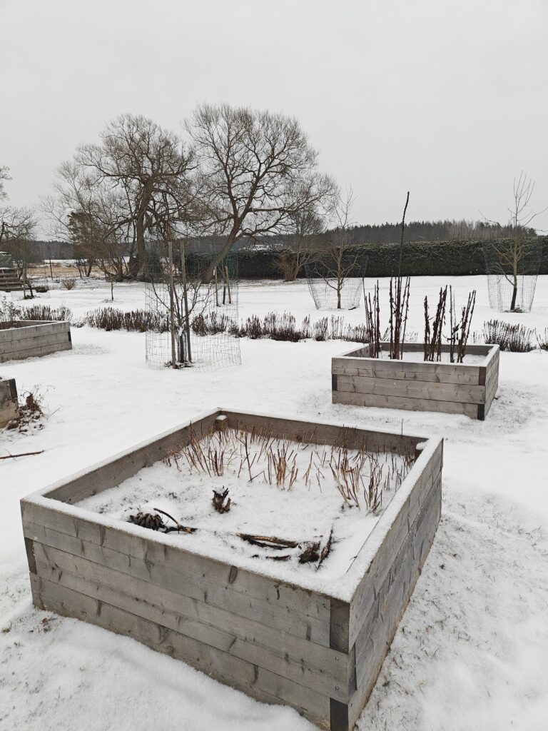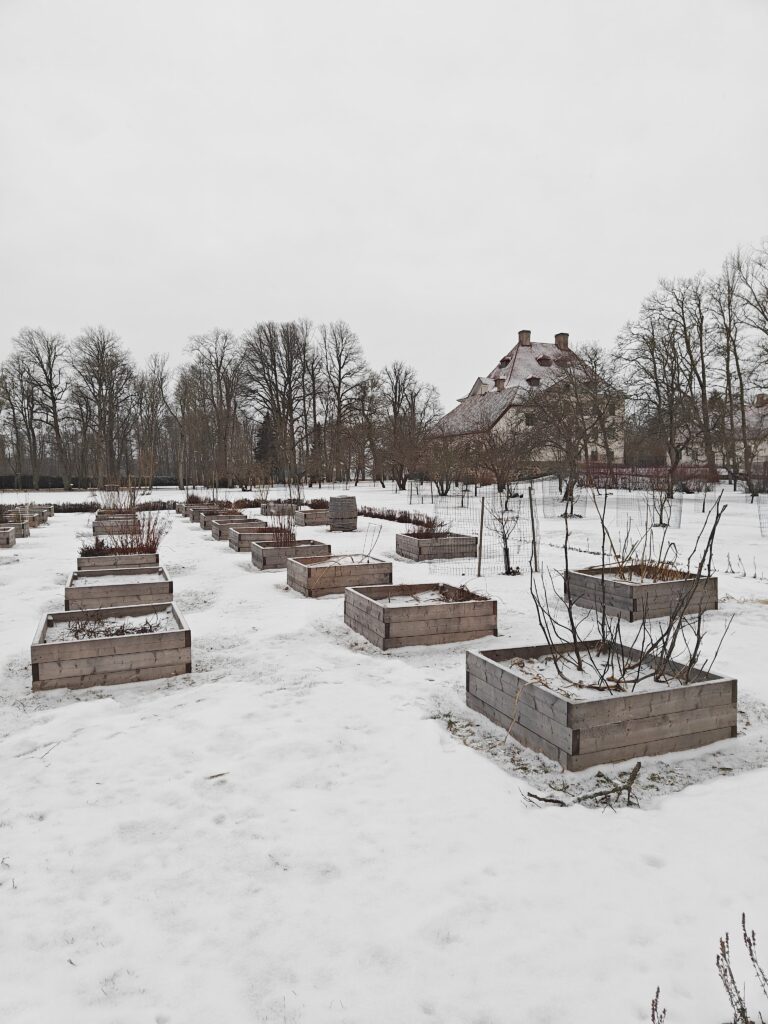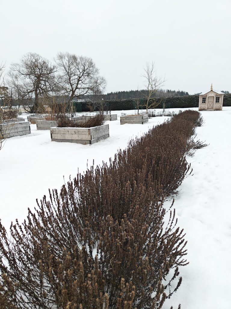 Blogi Mama’s garden Louhisaaren kartanon puutarhassa Vierailin viikonloppuna tyttäreni luona Turussa ja siinä yhteydessä löysin tieni Louhisaaren linnan puutarhaa kiertelemään. Linna on talvikaudella suljettuna mutta puutarhan portit olivat avoinna, joten uskaltauduin tutkimaan myös niiden sisäpuolelle. Linnan takana avautuu laaja englantilaistyylinen maisemapuutarha vanhoine puineen. Louhisaaren pitkä historia Louhisaaren historiaa tiedetään 1400-luvun puolivälistä lähtien, jolloin silloinen tilanomistaja Elin avioitui asemies Magnus Flemingin kanssa. Elinin sukunimeä ei tiedetä. Tuon avioliiton jälkeen Louhisaari pysyi saman suvun hallussa aina vuoteen 1791 asti. Tämän jälkeen tilaa hallitsi Mannerheimin suku ja kaikkien tuntema Suomen marsalkka Mannerhein syntyi Louhisaaressa 4.6.1867, seitsenpäiseen sisarusparveen. Kartano kuitenkin myytiin vielä yhdelle suvulle vuonna 1903, jolta linna puistoalueineen siirtyi 1961 Suomen valtion omistukseen ja museoviraston hallintaan. Varhaisin maininta Louhisaaren puutarhasta on löytynyt 1610-luvulta, jolloin oikeudenkäyntiasiakirjassa mainitaan Louhisaaren kirsikkapuutarha. 1600-luvulla kartanolle luotiin barokki-ihanteita mukaileva asemakaava. Kunniapihalta lähti kahden kilometrin pituinen suora ajotie Askaisten kirkolle asti. Puutarhurimestarin asiakirjoista on selvinnyt, että 1700-luvulla linnan puutarhassa on kasvanut ainakin mulperipuita, viinimarja- ja kasviaismarjapensaita, omenapuita ja parsapenkkejä. Mannerheimien aikana puutarha oli marsalkan isoisoäidin Wendla Sofian mielenkiinnon kohteena. Hänen toimestaan muotoutui kartanon ja meren väliin jäävä Englantilaistyylinen maisemapuutarha. Linnan puutarhassa on ollut myös 1700-luvulla yleinen ruutanalammikko ja kasvihuonekin. Niiden sijainnista en kuitenkaan löytänyt tarkempaa tietoa. Maisemapuutarhan katseenvangitsijana toimii vanha kylpylärakennus. Tietenkin kartanon alueelle rakennettiin myös huvimajoja ja rannassa ollutta vanhaa kylpylärakennustakin laajennettiin kesällä 1825 jolloin se sai nykyisen temppelimäisen olemuksensa ja alkoi toimittaa myös huvimajan virkaa. Vuonna 1874 tilatussa puutarhasuunnitelmassa säilytettiin puiston ja puutarhan perusrakenne mutta alueita ryhdistettiin istuttamalla mm. palsami- ja harmaapoppeleita ja uusi omenatarha. Puutarhassa oli myös ns. tapettiryhmiä ja kaartuvia puutarhakäytäviä. Hyötytarhan puoli säilyi kuitenkin edelleen barokille tyypillisenä säntillisenä muotopuutarhana, millainen se on nykyisessäkin asussaan. Hyötytarhan komeat viljelylaatikot. Hyötytarha sijaitsee kartanorakennuksen keskiakselin vasemmalla puolella. Kesästä 2016 lähtien on linnan hyötypuutarhassa voinut tutustua 1700-luvun hyöty- ja koristekasveihin. Hyötytarhan kunnostamisessa hyödynnettiin Pehr Kalmin oppeja symmetriasta ja kasvien hyötykäytöstä ravintona tai lääkkeeksi. Tällä hetkellä kartanolla panostetaan myös omenatarhan laajentamiseen. Hyötytarhaa reunusti paikoin ihanan rehevä iisoppiaita. Kartanolla täytyy kyllä päästä ensi kesänä käymään myös sen aukioloaikana, sillä löysin lähteestä maininnan kartanon sivurakennuksessa olevasta näyttelystä, missä syvennytään juurikin kartanon puutarhahistoriaan. Kuulostaa erittäin mielenkiintoiselta, toivottavasti se on edelleen olemassa! Tässä lisää herkullisia yksityiskohtia linnan puutarhasta! Latva-artisokka Linnan puutarhan hyötytarhasta löytyi niin kauniita latva-artisokan kukkia! Voin vain kuvitella miten upeita nämä ovat olleet loppukesän puutarhassa tanakasti pystyssä seisoessaan. Mielenkiintoisia siemenkotia Yritin tunnistella hyötytarhan kasveja tuoksuista ja siemenkotien ulkonäöstä mutta tämä jäi ilman nimeä. Tunnistatko tämän erittäin aromaattisen kasvin, joka oli jo syksyllä kasvattanut lupaavan vihreän lehdistön maan rajaan? Hyötytarhan kastelu Laatikoista rakennettu hyötytarha vaatii tietysti kasvukaudella säännöllistä kastelua. Vaikka laatikot olivatkin melko kookkaita niin silti viljelykset kuivahtavat helposti koholla olevissa laatikoissa. Aluetta ympäröivät tasaisin välein kuvan mukaiset jykevät tammitynnyrit kätevillä hanoilla varustettuina. Kasteluputket Entisen kylpylärakennuksen takana oli melko tuore istutus, jonka yhteydestä bongasin kätevät ja kauniit kasteluputket. Ihana tapa hyödyntää vanhat savitiiliset salaojaputket. Putkien kautta vesi menee suoraan puun juuristoalueelle! Kukkapenkin reunus Kartanorakennuksen takana sijaitsevan kylpylärakennuksen edustalla oli viehkosti reunustetut kukkapenkit. Harjateräksestä taivutetut ja kauniilla sävyllä maalatut kaaret näyttivät kivalta tähänkin aikaan vuodesta. Lähteet: https://www.kansallismuseo.fi/fi/louhisaari, https://www.gardenartsociety.fi/pdf/PM/Louhisaarenkartanolinna.pdf Share to: facebook Share to: twitter Share to: pinterest Julkaistu 1.2.2026 Kommentoi Lue kommentit (0) Ei ole kommentteja. Lähetä kommentti Peruuta vastausNimi * Sähköpostiosoite * This site is protected by reCAPTCHA and the Google Privacy Policy and Terms of Service apply.Kommentti * Mama's garden Puutarhanhoitoa Mamman puutarhassa ja intoilua kaikesta vihreästä. Häärään täällä Ib vyöhykkeellä, tonttimme koko on reilut 5000 m2, josta vajaa puolet on luonnontilaista kalliota. Facebook Instagram Pinterest mammanpuutarha@gmail.com Arkisto 2026 (2) 2025 (25) 2024 (26) 2023 (28) 2022 (46) 2021 (54) 2020 (72) 2019 (49) 2018 (47) 2017 (68) Kategoriat Valitse kategoria Blogi kasvikokoelma Kaupallinen yhteistyö Keittiötarha Koristekasvit Metsäpuutarha niittykasvit Piharakentaminen Pihasuunnittelu Puutarhamatkailu Puutarhanhoito Vihersisustus Yleinen Avainsanat Valitse avainsanaa `Bougie` acis autumnalis adventtiasetelma Aeonium agave aikainen kevätkukkija amaryllis amppeli amurinpioni Anemone Anemone `Wild Swan` antiikki- ja perinnepäivät araucaria Araucaria araucana arboretum arvonta asetelmia askartelu asteri auringonku